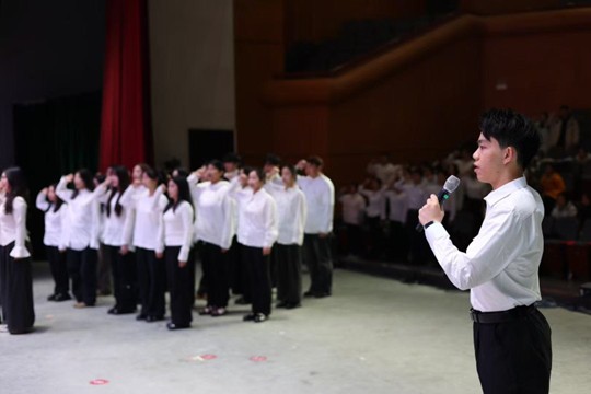 紧接着,宣誓仪式庄严举行。在领誓人朱泓睿的带领下,全体学员高举右拳,郑重宣誓。铿锵的誓言在会场内激荡回响,不仅将“不忘初心、牢记使命”的承诺内化于心,更将激励全体学员外化于行,为崇高理想矢志奋斗。