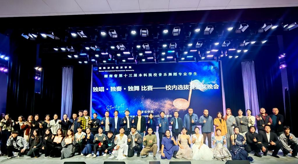 11月10日19:00,湖南省第十三届本科院校音乐舞蹈专业学生独唱·独奏·独舞比赛——校内选拔赛颁奖晚会在实验剧场圆满落幕。整场晚会星光熠熠、精彩纷呈,掌声与喝彩声此起彼伏,为历时数周的激烈角逐画上了圆满句号,充分展现出我院学子深厚的艺术功底与蓬勃向上的精神风貌。