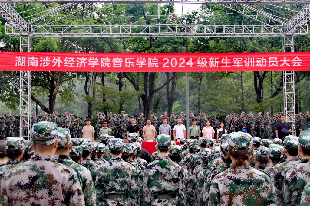 为激发新生们的军训热情,明确军训的目的和意义,为接下来的军训活动打下坚实的基础。湖南涉外经济学院音乐学院于2024年9月7日上午八点在文化广场举行2024级新生军训动员大会。音乐学院院长王跃辉教授、湖南涉外经济学院学生工作处副处长,军训团副政委徐京都同志、音乐学院副院长黄亚教授、音乐学院党总支副书记周孝贵同志、音乐学院团总支书记方隆极同志及辅导员代表出席本次大会,大会由音乐学院团总支书记方隆极老师主持。