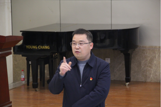 音乐学院党总支书记陈志明老师对目前学院开展的工作表示肯定,提出了后期工作开展的要求和期望,鼓舞了士气,坚定了建设音乐学院优秀寝风的决心。