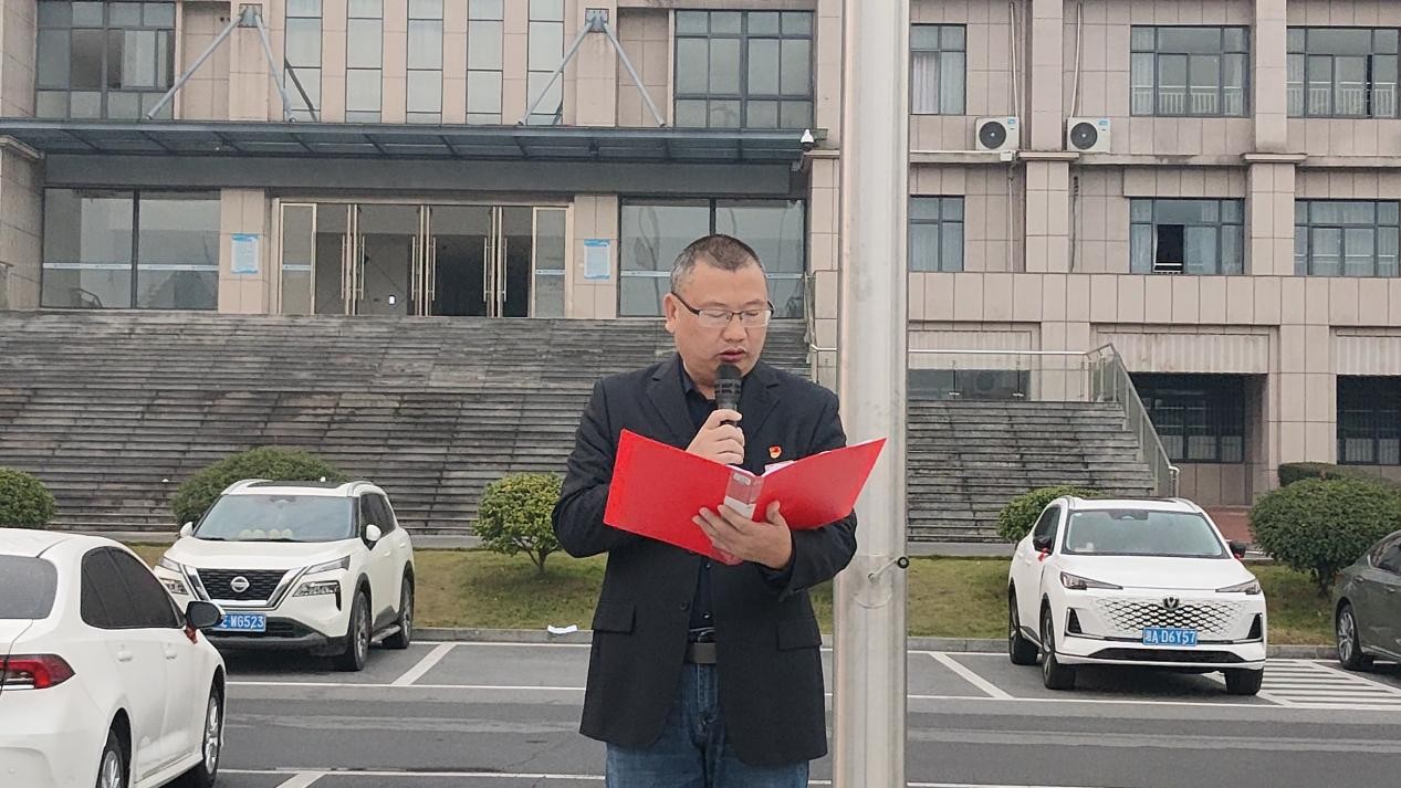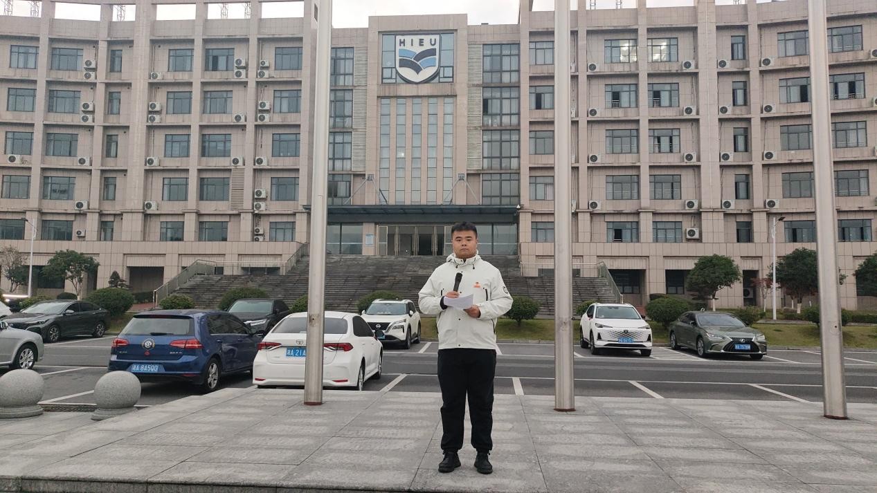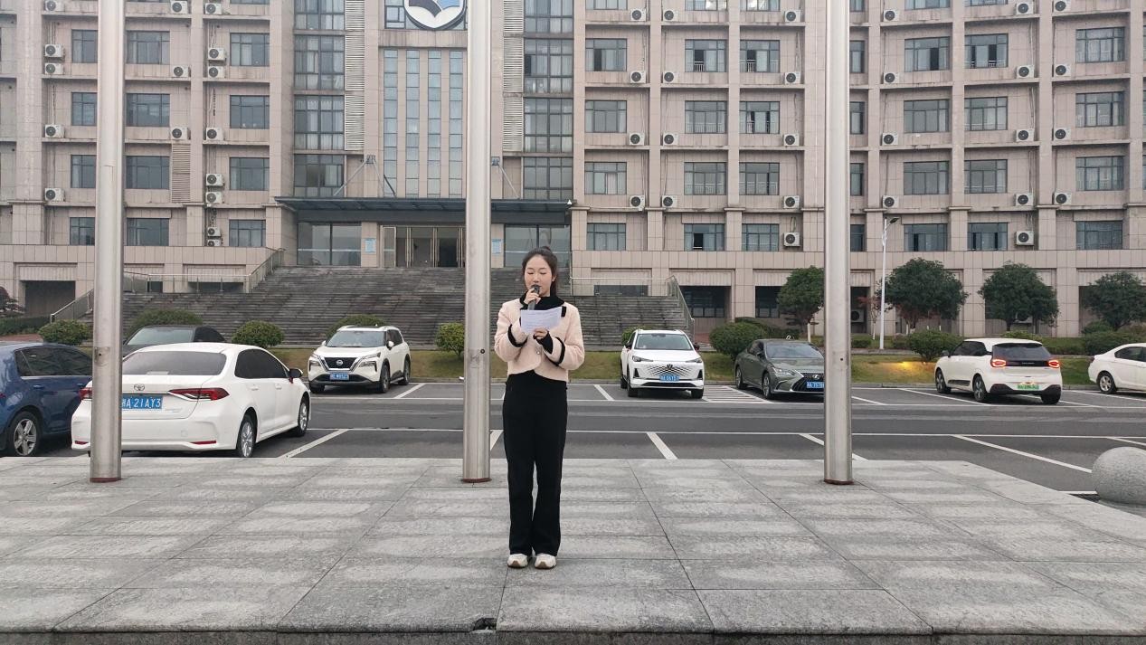 仪式第二项,由音乐学院团总支书记方隆极领读宪法晨读内容。在晨读中,宪法知识深入内心,培养青年学生对宪法权威的尊崇感与责任感,使其明晰自身权利义务,为塑造懂法守法、积极践行法治的新时代青年奠定坚实基础,助力法治社会建设。