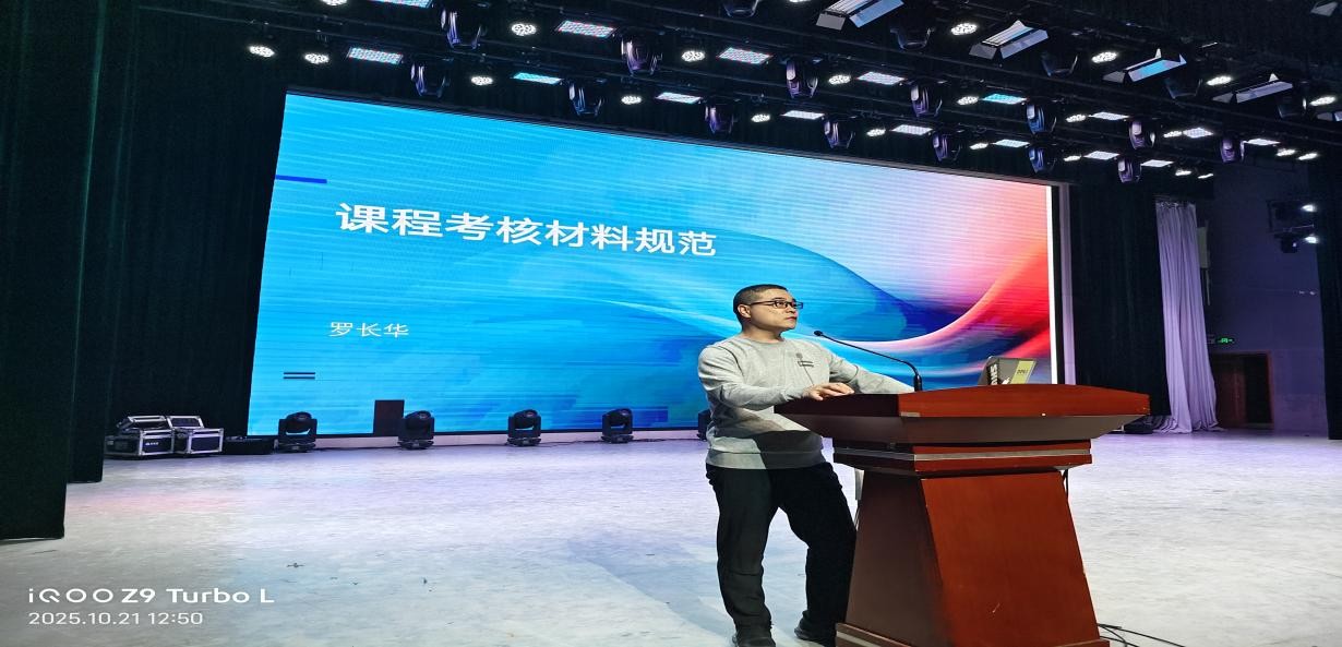 理论系主任罗长华老师,针对课程考核材料规范进行深度讲解,从试卷类的题型、知识覆盖面、试卷结构、评阅试卷、试卷批改等;非试卷类考查科目的成绩录入要求及流程;命题及非命题材料的装订要求,特别针对教师的试卷分析报告提出严格按照成绩分布状况、学生总体解答情况、从试卷中反映出的教与学存在的问题等方面进行撰写的要求。