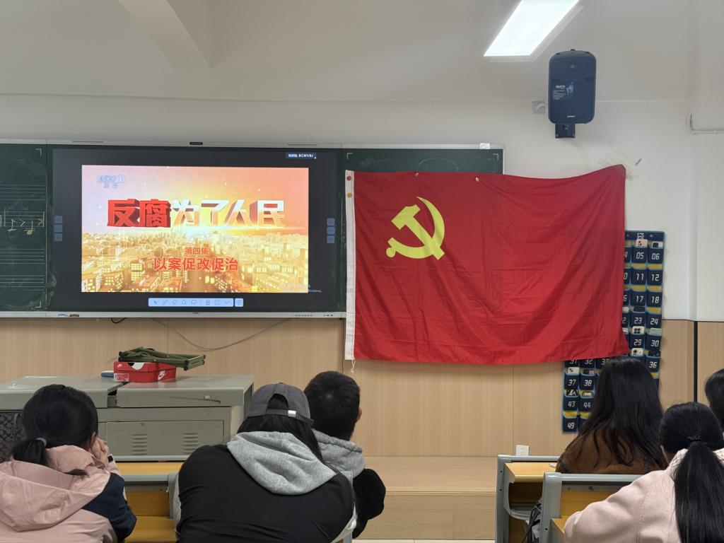 以案为鉴,绷紧纪律之弦。活动中,师生集体观看专题片《反腐为了人民》。影片通过真实案例剖析,揭示腐败问题的严重危害,展现党中央正风肃纪的坚定决心,教育引导师生进一步增强纪律意识、筑牢思想防线,夯实廉洁自律的认知根基。