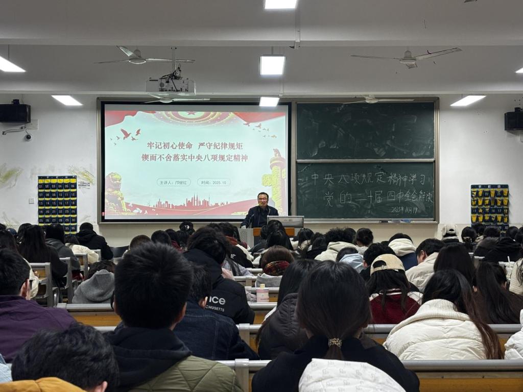 2025年11月19日19:00,音乐学院与人文艺术学院在12教209教室联合开展2025年秋季学期发展对象第七次党课培训。本次培训以“中央八项规定精神学习教育,党的二十届四中全会解读”为主题,特邀校党委组织部部长邝继红老师主讲,旨在进一步统一发展对象的思想认识,锤炼党性修养。