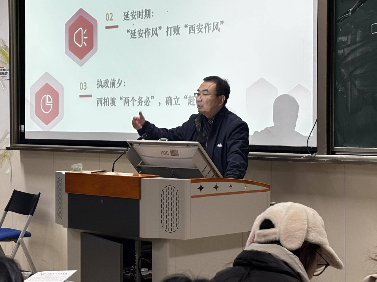 随后,邝继红老师对党的二十届四中全会精神进行了系统解读。他指出,全会聚焦国家治理与社会发展的重大议题,为今后一段时期的发展指明了方向。他强调,这为发展对象如何践行使命、担当作为提供了根本遵循,号召大家将宏伟蓝图转化为个人成长与奉献的实际行动,坚守为民初心,在新征程上奋力前行。