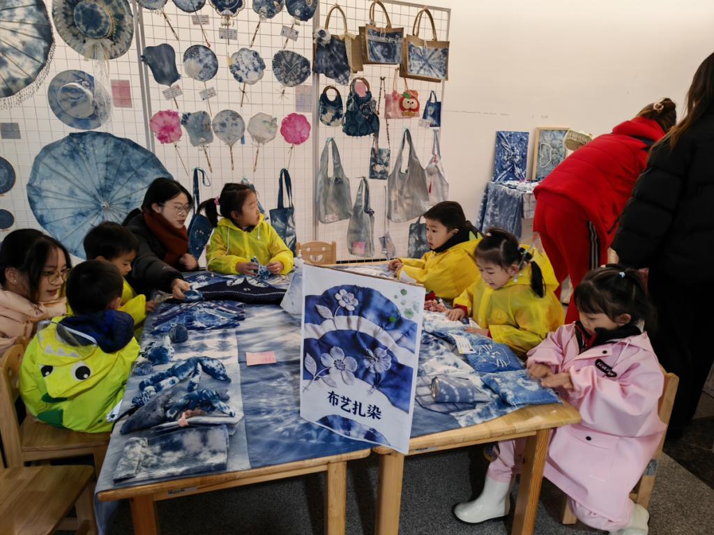 本次汇报展以“动手实践+创意表达”为核心教学理念。展区作品类型丰富,涵盖剪纸、衍纸、纸雕、布艺、扎染、综合材料创作等多个板块。此外,现场还设置了互动手环制作、手偶DIY等体验区,小朋友们在沐爱而行志愿者的引导下积极参与,在动手实践中沉浸式感受艺术创作的魅力。