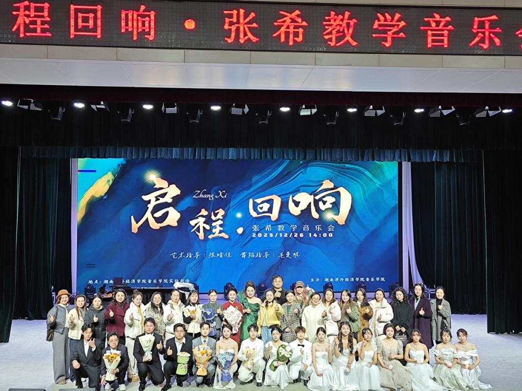 2025年12月26日14时,音乐学院在实验剧场圆满举办了张希教学音乐会《启程·回响》。本场音乐会系2025年湖南省教育厅教研教改重点项目《产学研融合背景下高校声乐专业课程思政育人模式创新研究》阶段性研究成果。