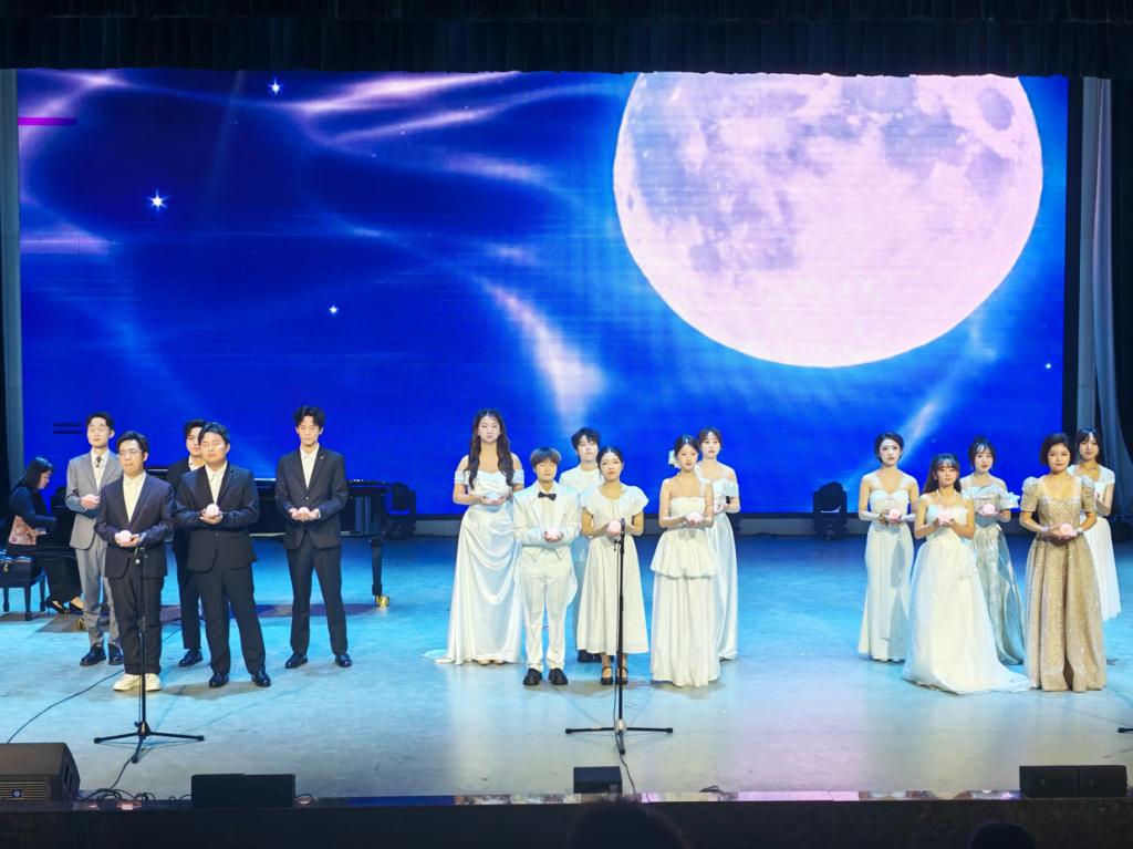 音乐会曲目编排丰富多元,涵盖多种音乐风格。从古典诗词艺术歌曲《念奴娇·赤壁怀古》的雄浑演绎,到莫扎特歌剧选段《我去向何方》的精致呈现;从民族声乐作品《呼伦贝尔大草原》的悠远意境,到流行经典《贝加尔湖畔》的现代诠释,充分展现了学生们扎实的演唱功底和良好的艺术表现力。整场演出在全体学生合唱《月亮代表我的心》的温馨氛围中圆满落幕。